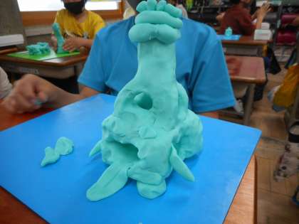 板にしたねん土やひもにしたねん土の形を生かして,大きく立ち上げることに挑戦しました。重ねたり,巻いたり,ねじったり・・・色々な方法を試しながら,どのように立たせるとおもしろいか,考えながら進めました。きれいに作ろうとするのではなく,偶然できた形や歪んでしまった形さえも生かしながら,楽しく作りました!