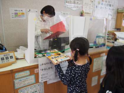 1年生は初めて本を借りました。