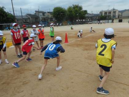 今日のリレーの学習では,今まで練習してきたバトンパスやバトンゾーンの使い方を意識して,どのチームもいい走りができました。「何秒やった!?」「やった!タイムあがってる!」などの喜びの声がたくさん聞こえました。ふり返りでは,「チームワークが大事だと思った」や「バトンゾーンをうまく使いこなすことができた」など,上達が感じられる内容がたくさんあり,感心しました!