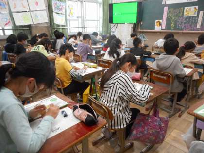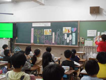 えがおの日の学習で,『あいさつができた』という道徳のお話をもとに,気持ちのよいあいさつについて考えました。「あいさつがはずかしいと思ってしまう」「ぱっと言えなかった」など,正直な気持ちと向き合いながら,主人公の気持ちを考えていきました。最後には,「あいさつができるようになったのは,心の成長だと思う」「自分も相手もいい気持ちになって笑顔になる」など,子どもたちの素直で前向きな意見がたくさん出てきました。4年生のあいさつで,太秦小を盛り上げていきたいですね!