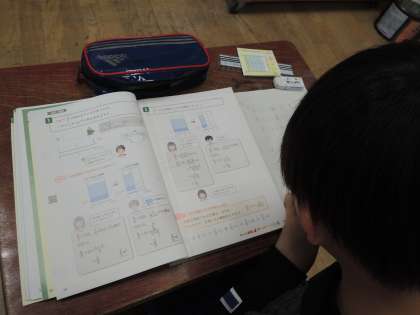 算数科では,「分数×整数,分数÷整数」の学習をしています。