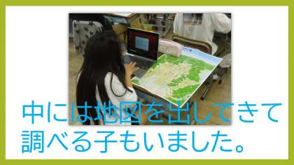 総合的な学習の時間の中で「どうして京都には多くの外国人が訪れるのか」を調べていきました。自分たちのたてた予想が正しかったのかを色々な方法を使って調べていくのですが,今日はタブレットを使用しました。タブレットの扱いには慣れたもので,すぐにログインをして学習を進めることができました。