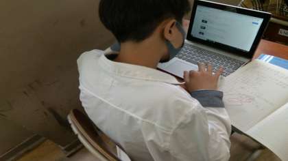 自分の学習問題を作り,それをタブレットを活用して調べています。