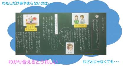 「心をしずめて」という教材の学習をしました。感情的にならずに,心をしずめて穏やかな気持ちになることの大切さに気付けるように,みんなで学習を進めて行きました。なかなか難しいことですが,大切なことですね。