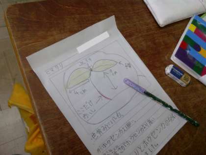 2枚のその芽を「子葉」と呼ぶことも学習しました。