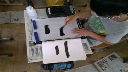 3年生で初めての毛筆学習に取り組みました。普段使っている鉛筆とはまた違った書き方に戸惑いながらも一生懸命「二」を書きました。
