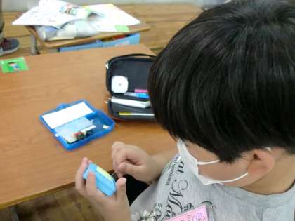 5年生の家庭科の学習では,裁縫セットを使って学習しています。