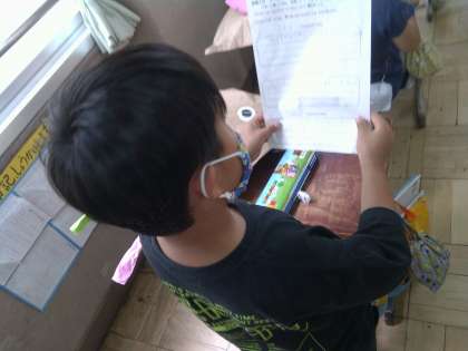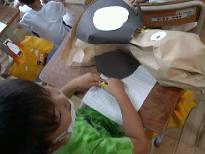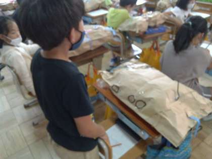 1組をのぞいてみました。先週みんなで作った「くしゃくくしゃぎゅっ」の鑑賞会をしていました。