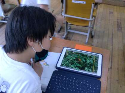 タブレットを使って野菜の観察