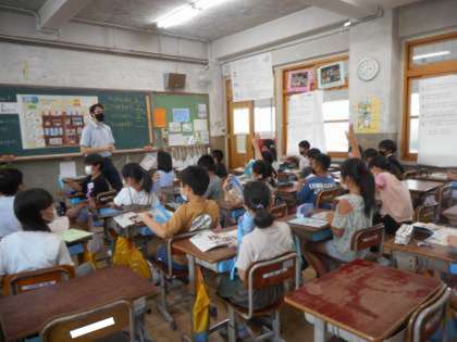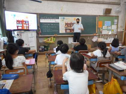 これからの外国語活動の学習は,Unit5『Do you have a pen?』です。今日はALTの先生が来て,身の回りにある文房具の言い方を学習しました。鉛筆やペン,ノートは英語でも聞き慣れていましたが,鉛筆削りやスティクのりはなかなか英語で聞いたことがなかったので,「そんなふうに言うんや!」とみんな驚いた表情でした。実際に自分のスティックのりを見て「ほんまや,glue stickって書いてある!」と発見している人もいました。学習したことを日常生活の中で結び付けていってくれると嬉しいです。