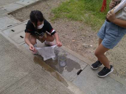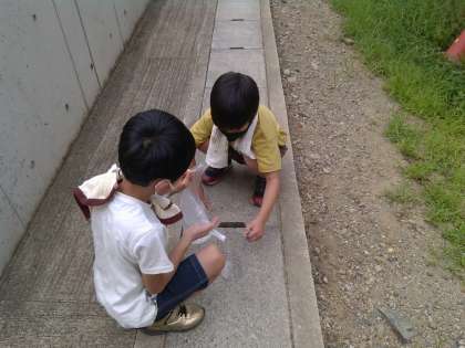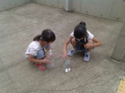 と入れ物の水のかさに驚いていました。
