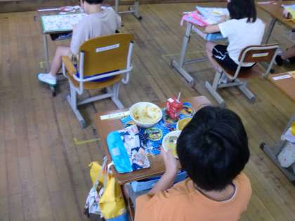 今日の給食はチキンカレーでした。みんな大喜び。食缶はすっかり空っぽになりました。ご馳走様でした。