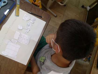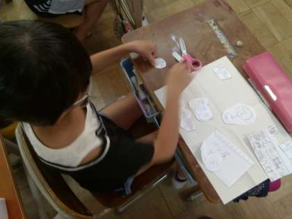 描いて,切って,どんな絵がいいか,画用紙の上で