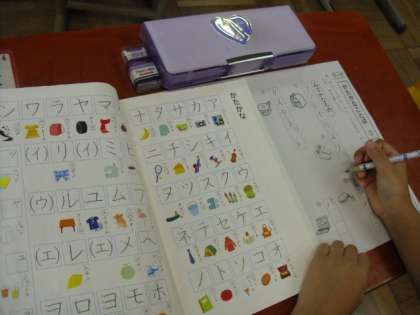 カタカナの学習をしました。子ども達は,国語の教科書でとめ,はね,はらいなど細かいところを確認しながらワークに取り組みました。さらに,ステップアップしていきます。