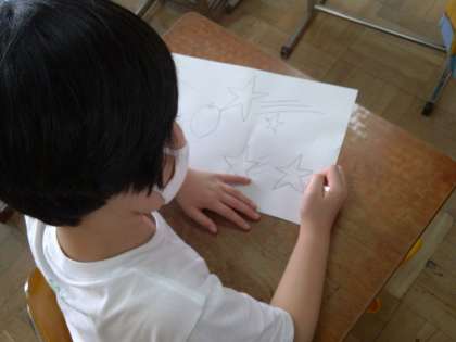 今週から図工の学習でお話の絵に挑戦しています。4組は,白い紙にアイディアスケッチをしていました。