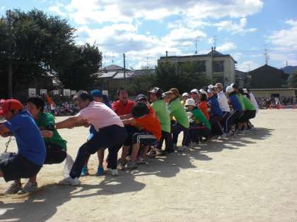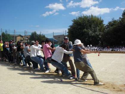 午後の部の最初は,恒例の保護者対教職員のつなひきでスタートします。今年の結果は,やはり強かった!保護者チームの勝利です。