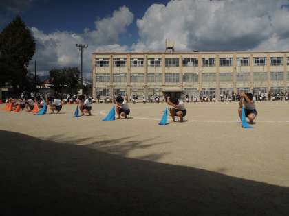 団体演技のフラッグでは,本番直前に変更した点もありますが,そこにも柔軟に対応し,こちらもこれまでで一番の演技ができていました。