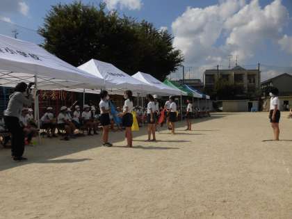 演技終了後,5年生にフラッグの贈呈式を行いました。