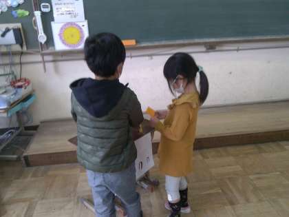 1年生を招待して,おもちゃやさんを行いました。みんなで作ったおもちゃや,頑張って書いたおもちゃ作りの説明書を,ロイロノートを使って,1年生へ送りました。今日は,たくさんおもちゃで遊んでもらって,気に入ったおもちゃの作り方を1年生が後でロイロノートからみることができます。