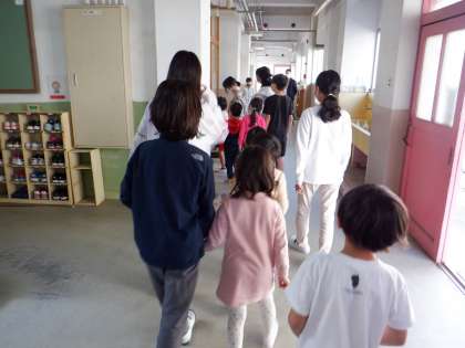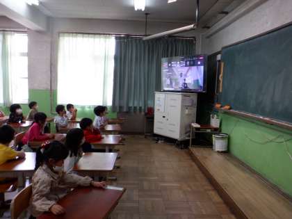 6年生が1年生を全校のみんなに紹介してくれました。ドキドキワクワクの時間でした。「どうしよう〜緊張してきたよ。6年生…。」と1年生が言うと,「大丈夫だよ,安心してね1年生!」と6年生が優しい言葉で励ましてくれました。ぐっと手を握り合って本番を迎えました。とてもよい経験ができました。