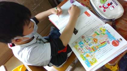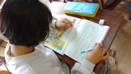 3年生で習った漢字を使って,文章を書きました。教科書のイラストを見ながら,町の人になりきって,町の紹介や,様子を伝える文章を書くことが出来ました。