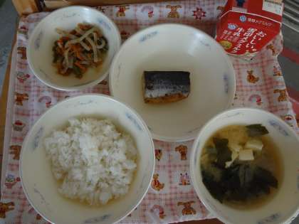 「牛乳」「胚芽米ごはん」「さわらの幽庵焼き」「野菜のきんぴら」「みそ汁」でした。