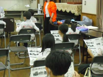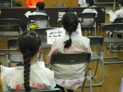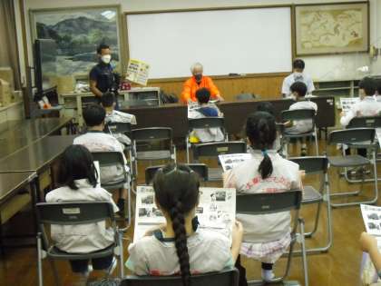 入塾式の後,右京消防署の方から地震についてお話しを聞きました。