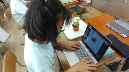 理科の学習では,植物の観察をしています。GIGA端末を使って写真を撮り,植物の変化を見ています。