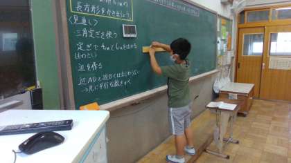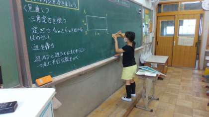 前の時間に学習した垂直な直線や平行な直線のかき方を使って,長方形や正方形をかきました。