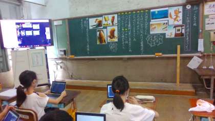 国語科の学習では、GIGA端末を使っています。主人公の伝えたかった思いを想像しながら学習を進めていきます。