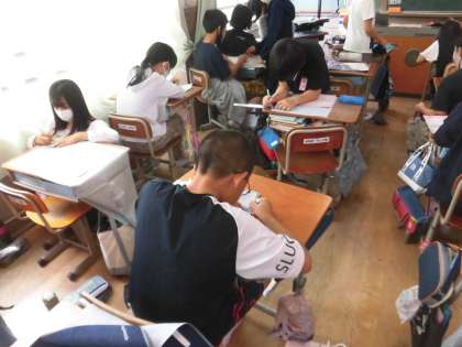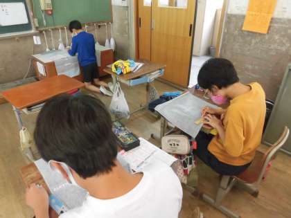 家庭科ではナップザック制作を進めています。安全に気を付けながら、自分なりの最高のナップザックを完成させてほしいと思います。