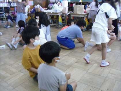 生活科では、いろいろなガラクタを集めて、ガラクタを回したり、転がしたり、積み重ねたり、色々な遊びを試しています。