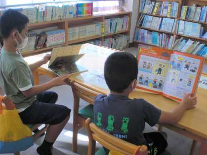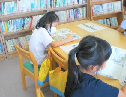 週に一度の図書の時間は、みんなにとってだいすきな時間です。それぞれの読みたい本を選びもくもくと本を読んでいます。読書の時間を楽しんでいます!