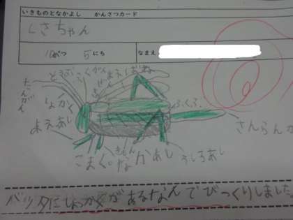 観察だけでは分からなかったことがたくさん見つけられたようです。「メダカは目を閉じることができないなんてびっくりしました。」などと感想も上手に書けています。