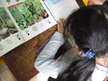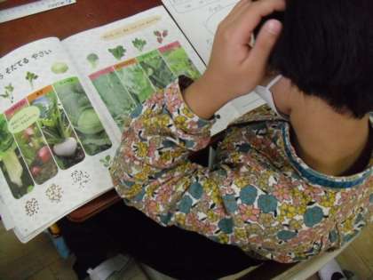 秋から育てる野菜を決めました。夏に育てた野菜と同じように大事に育てたいと,みんな思っているようでした。今日は種や苗の観察をしました。