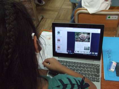 海の生き物についてタブレットの図鑑を読みながら、カードにまとめました。