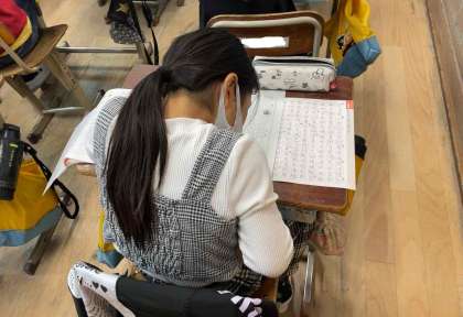 鉛筆の持ち方や姿勢に気をつけて、一文字一文字集中して書いています。