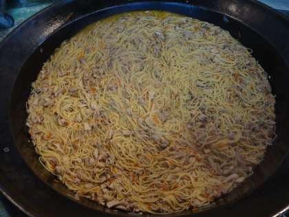 「きのこのスパゲティ」は、久しぶりの登場です!『しいたけ』・『エリンギ』・『まいたけ』の3種類のきのこを、よく炒めたにんにくやたまねぎ、ベーコンと一緒に煮て、最後にゆがいたスパゲティを加えて仕上げました。にんにくのいい香りが給食室からしてきて、「おなかすいた〜」と言っている子もちらほら。