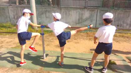 4年生の体育は、久々に運動場に出ました。天気もとても良く、絶好の体育日和でした。