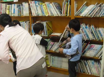 初めて学校図書館に行きました。図書館の過ごし方や本の貸出・返却の仕方を教えてもらいました。たくさんの本があってどれにしようか迷いましたね。みんな上手に借りることができました。
