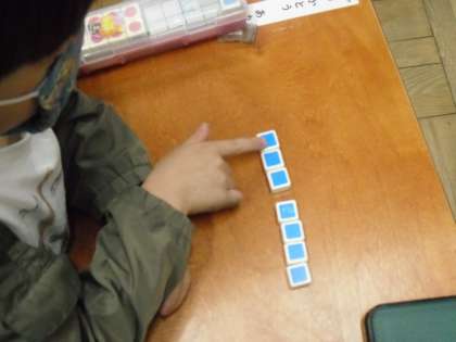 数図ブロックを使って一つずつ数えながらできましたね。