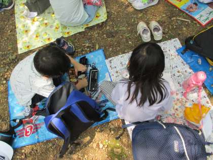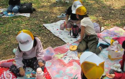 待ちに待ったお弁当タイムです。晴れた空の下で友達と食べるお弁当は、特別な美味しさだったようです。