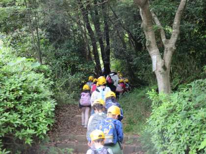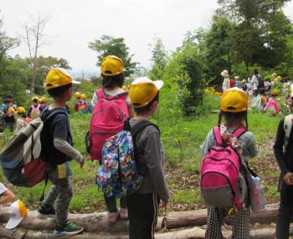 昼食を食べた後は、丘を登りました。力いっぱい、最後まで歩き切りました。本当によく頑張りました。丘の上からは、とってもきれいな景色を見ることができました。