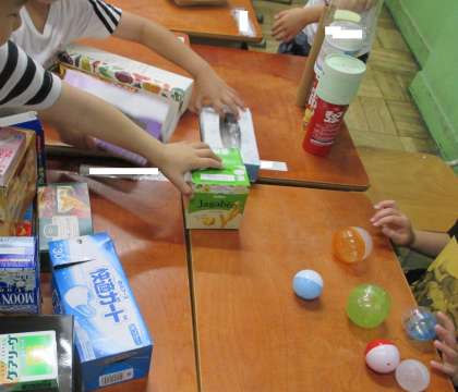 そして、「はこのかたち」「つつのかたち」「ぼうるのかたち」の3つに分けました。今後も、みんなで楽しく活動しながら学習を進めていきます。