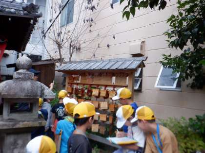 大映通りや三条通り方面に町たんけんに出かけました。「おはよう!」と元気な挨拶をしてくださる元気な地域の方や「どこに行くの?」と聞いてくださる近所の方たちなど、町の人たちに声をかけていただきながら楽しく安全に太秦の町を探検することができました。