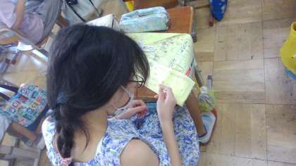 家庭科の学習では、裁縫セットを使って学習を進めています。まずは、玉結び、玉止めができるように頑張っています。