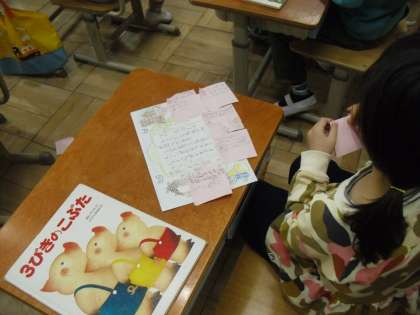 国語科の学習で、友だちの紹介カードに思ったことをふせんに書いて渡しました。たくさんのメッセージが届いて嬉しい気持ちになりましたね。