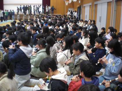 日頃の感謝を込めて「にじ」を歌い、リコーダー演奏もしました