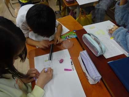 これから育てるひょうたんの実と種を観察しました。「どのくらい大きくなるのかな」「食べられるのかな。」と話しながら観察していて、育てるのが楽しみな様子が見られました。