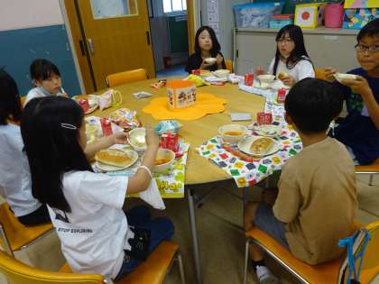 今週は、各クラス1日ランチルームで給食を食べました。大きなテーブルで顔を見合わせて食べる給食は、最高です!